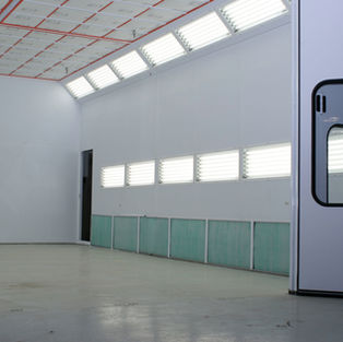 Kabine mit integrierter Radhebebühne und vollständiger Absaugung.